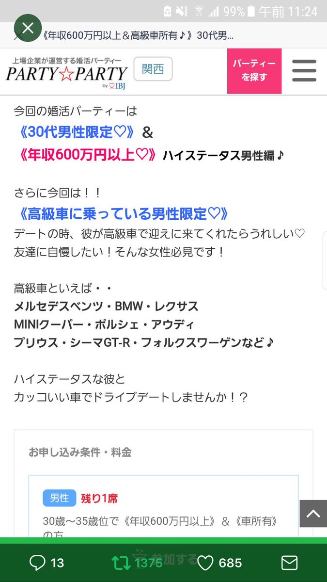 高級車に乗っている男性限定の婚活パーティーに いくら高級車や言うても履いてるタイヤみたら経済力わかるで Togetter